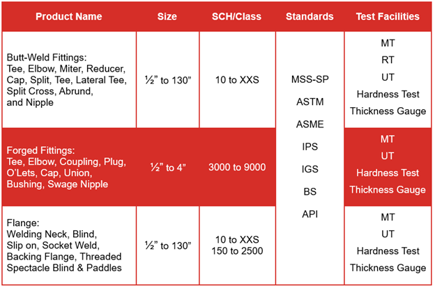 بفضل سنوات الخبرة والقدرة التنافسية العالية، تعمل هذه الشركة في مجال توريد أنواع مختلفة من تجهيزات اللحام الطرفي، واللولبي، والمقبس (بما في ذلك المرفقين، والمحاور، والمخفضات، والأغطية، والبطانات، والحلمات، وما إلى ذلك)، وأنواع مختلفة من الشفاه (رقبة ملحومة، ستارة، انزلاقية، ملحومة بمقبس، ملولبة، ستارة نظارات) بفئات وتصنيفات مختلفة. كما نتخصص في توفير أجزاء مزورة من العلامات التجارية الآسيوية والأوروبية ذات السمعة الطيبة.