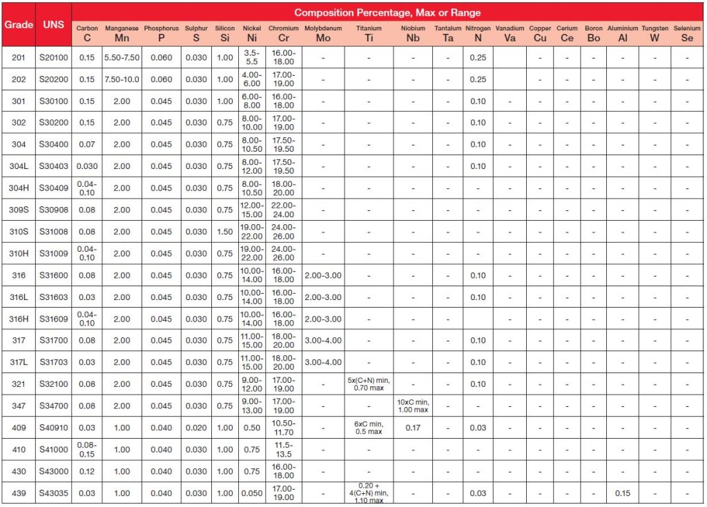 - Characteristics: The austenitic structure of these grades makes them non-magnetic and provides excellent weldability, formability, and corrosion resistance. The 300 series grades are widely used across various applications due to their optimal balance between cost and performance.
