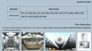 Due to its unique properties, stainless steel sheets are widely applied in numerous industries: